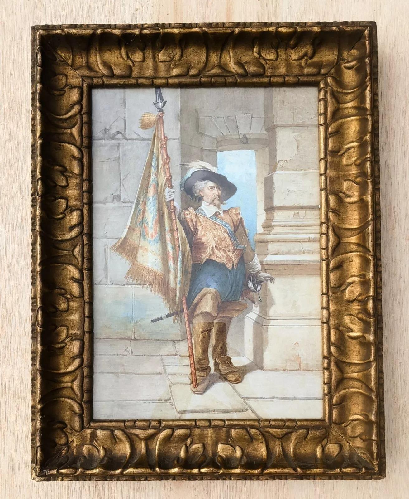 Antique Watercolour Painting Gilt Frame Cavalier Signed
