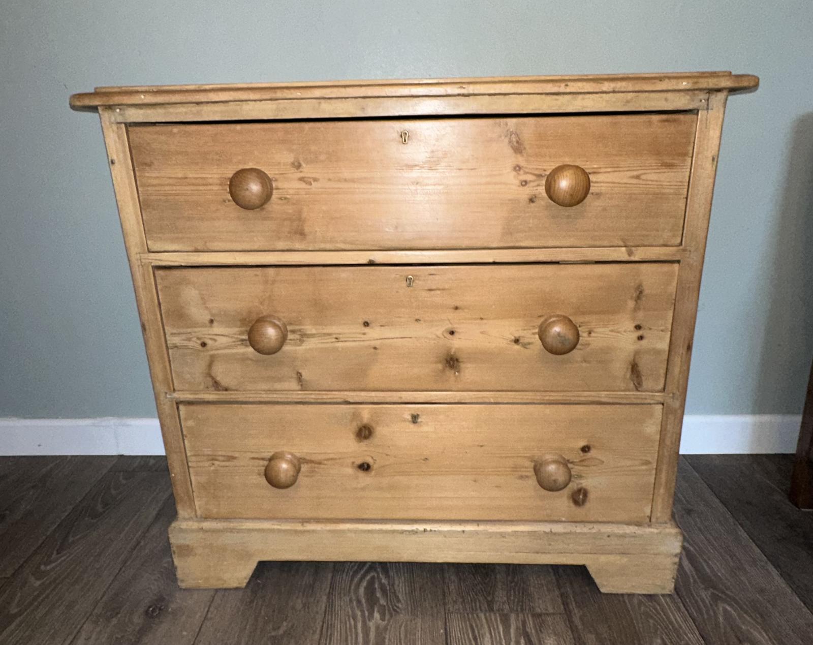 Antique Waxed Pine Victorian 3 Drawer Chest of Drawers