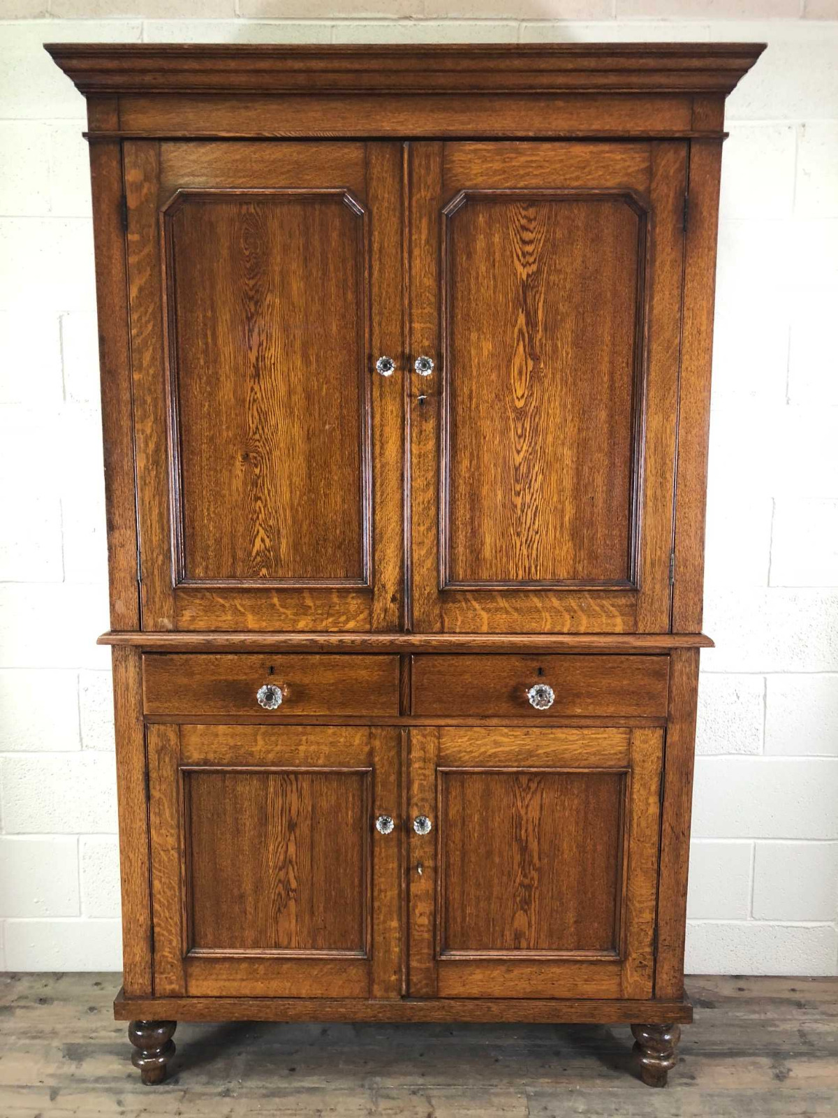 Antique Welsh Oak Linen Press with Victorian Glass Handles (1 of 1)