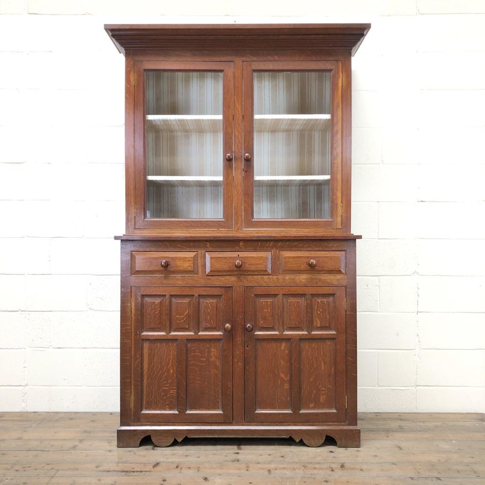 Antique Welsh Oak Two Stage Cupboard with Glazed Top