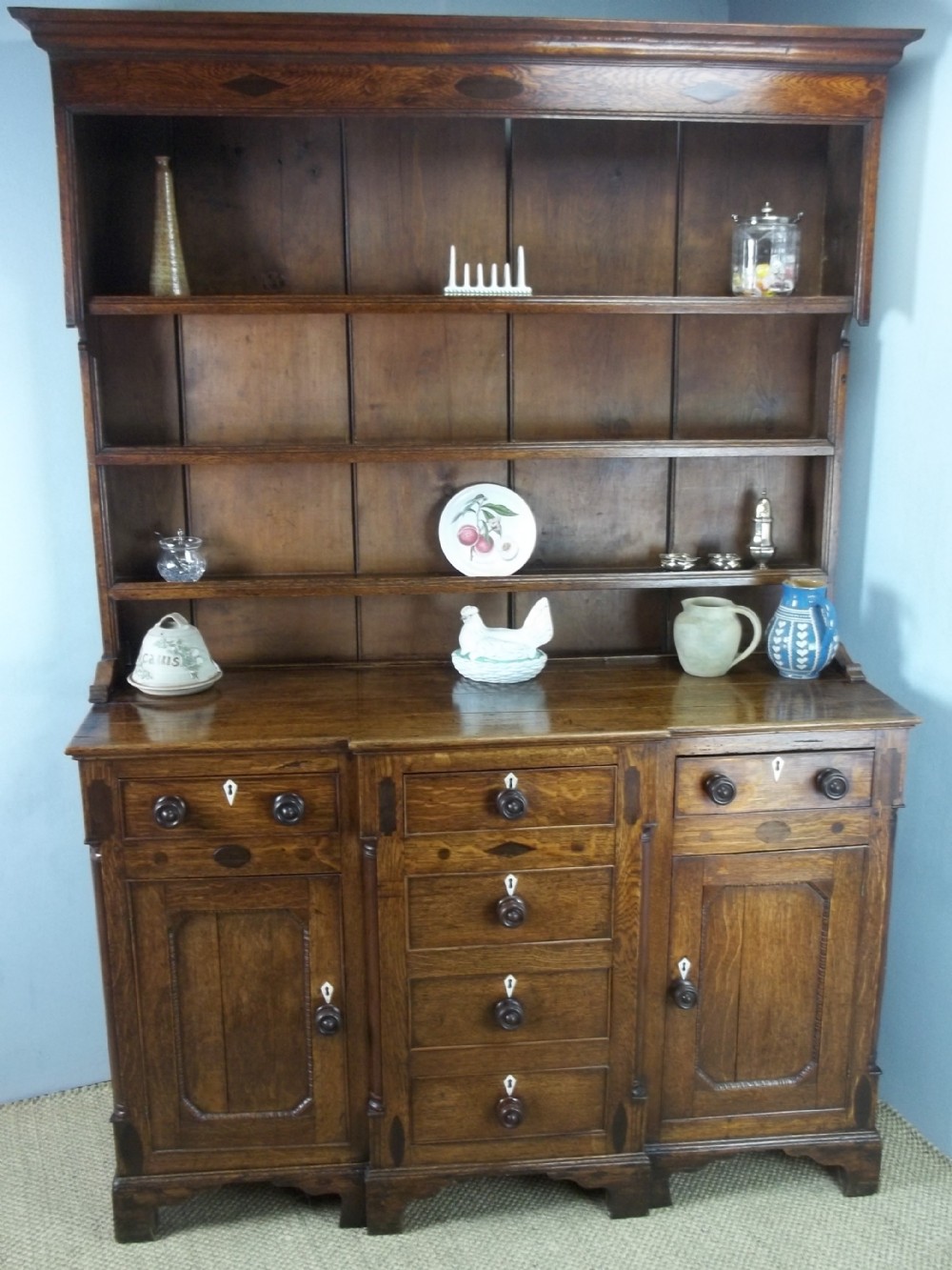 Antique Welsh Small Georgian Anglesey Oak Breakfront Dresser Base & Rack