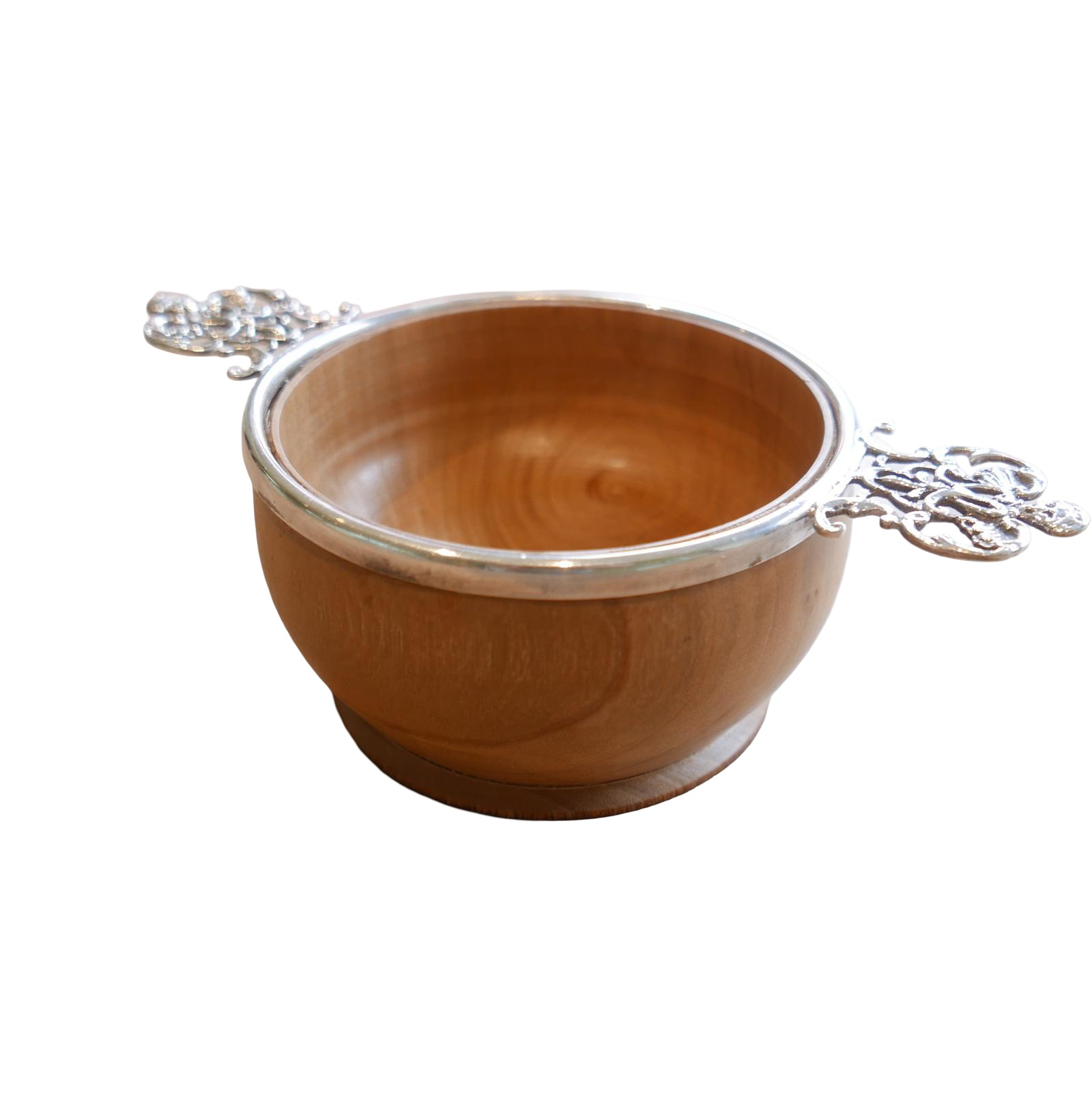 Here we have a beautiful antique William Comyns silver mount recently salvaged and remounted on a turned cherry wood bowl. It could be a desk tidy or porringer that could be put to many uses around the home or office. The silver mount dates to 1895-96 and was assayed in London.