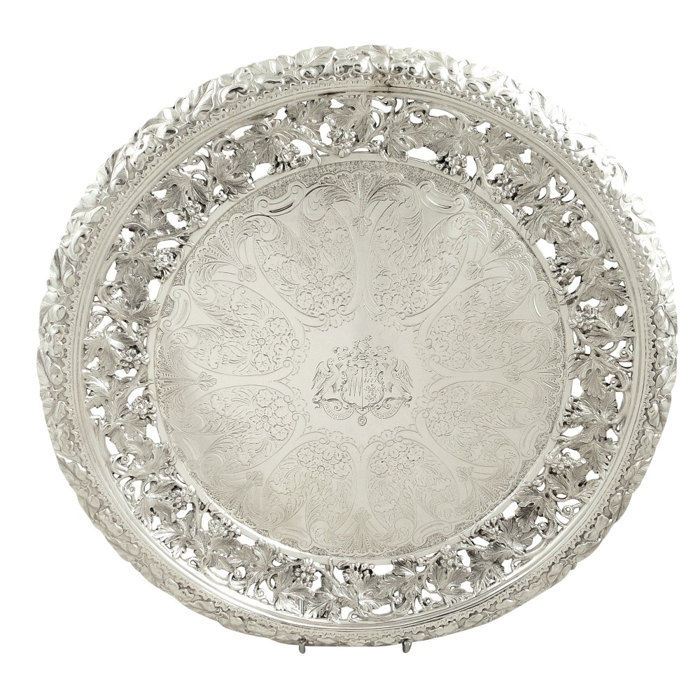 Antique William IV Sterling Silver 12' Pierced Tray / Salver