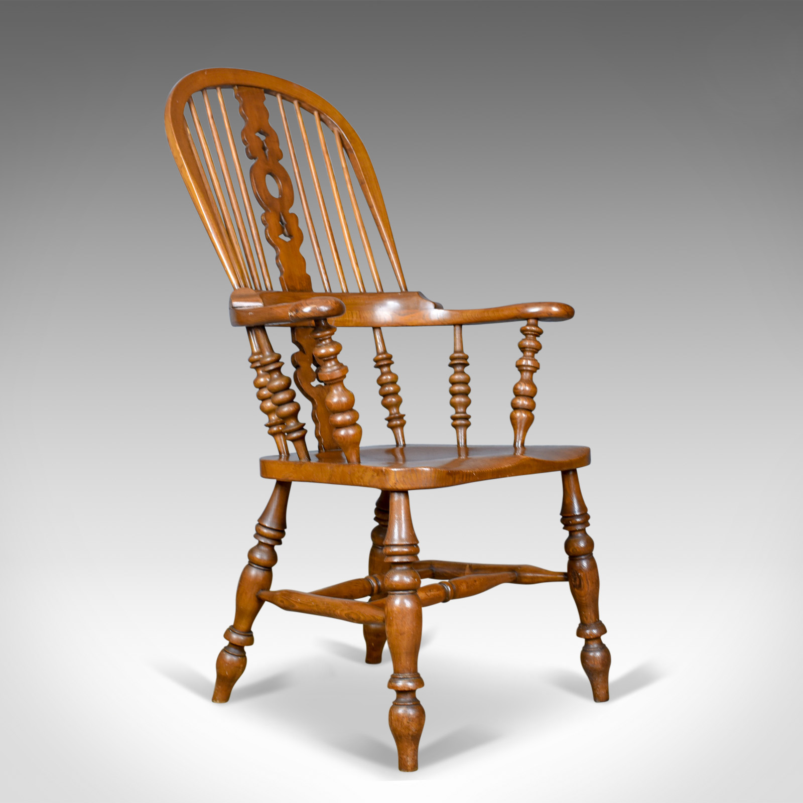 Antique Windsor Armchair, Victorian, Yorkshire Broad Arm Elbow Chair c.1900