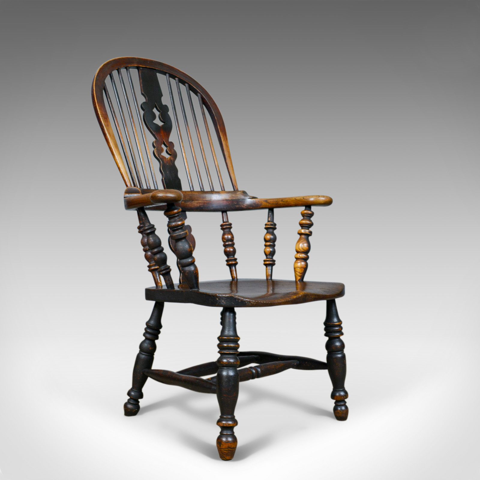 Antique Windsor Broad Arm Elbow Chair, English, Victorian, Elm, Ash c.1850