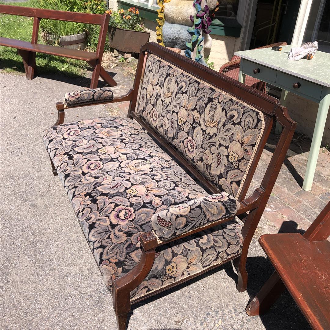 Antique Wood Framed Upholstered Banquette Style Sofa (1 of 14)