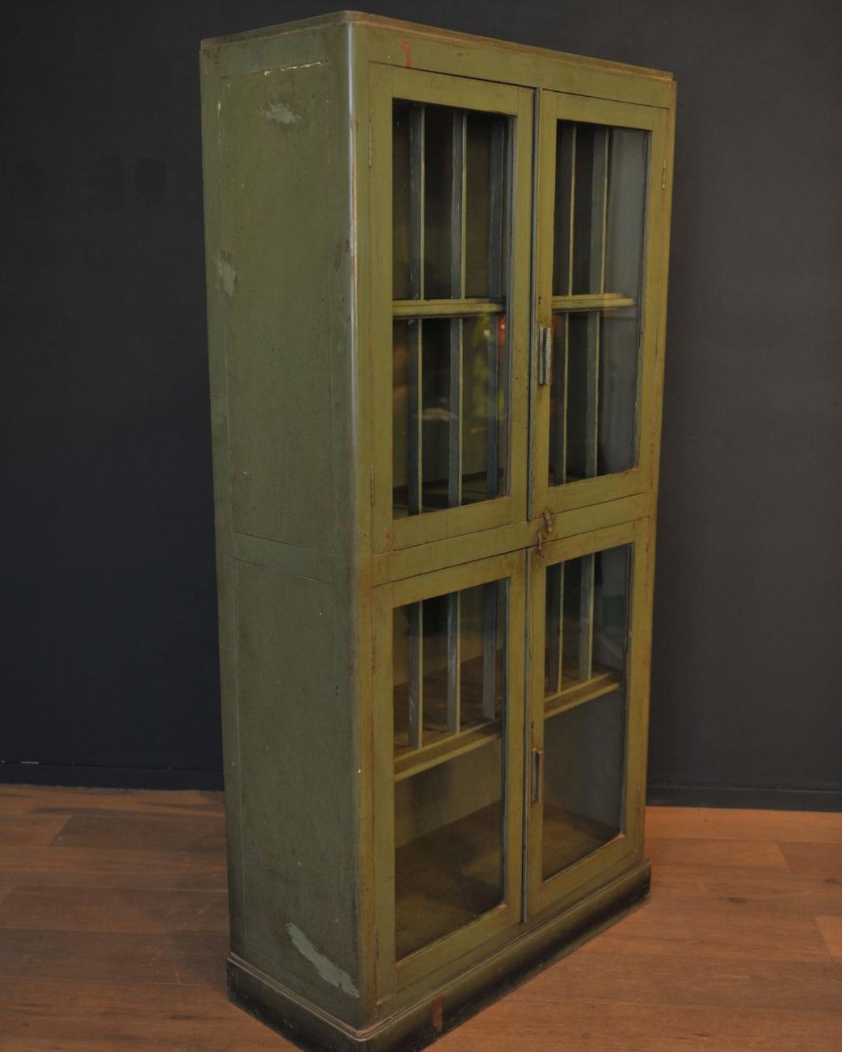 Antique wooden bookshelf painted in green color