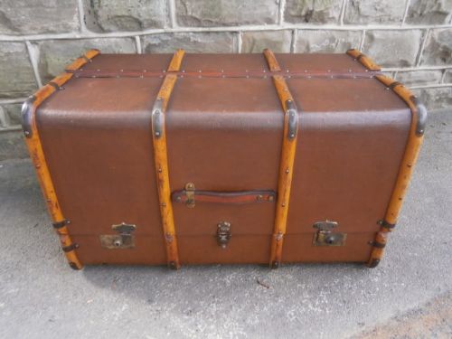 Antique Wooden Bound Travelling Trunk / Vintage Luggage
