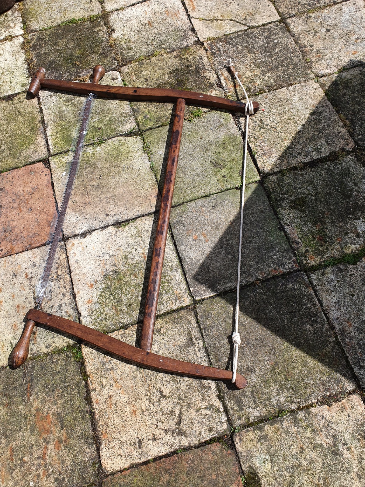 Antique Wooden Bow Saw with Turned Handles