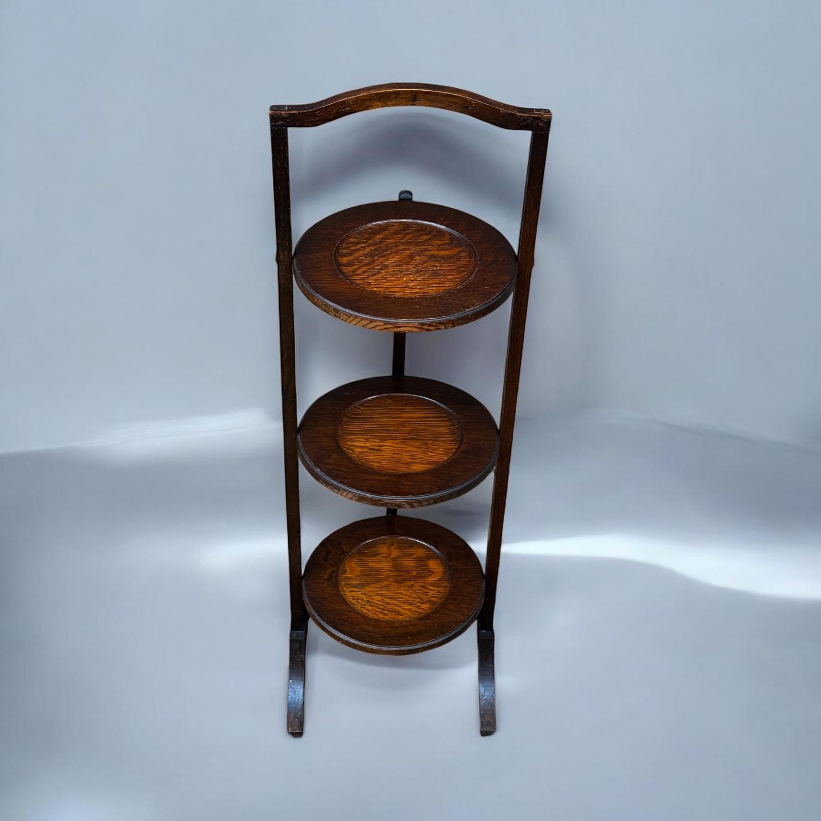 Antique Wooden Cake Stand / 3 Tiered Folding / English C1920