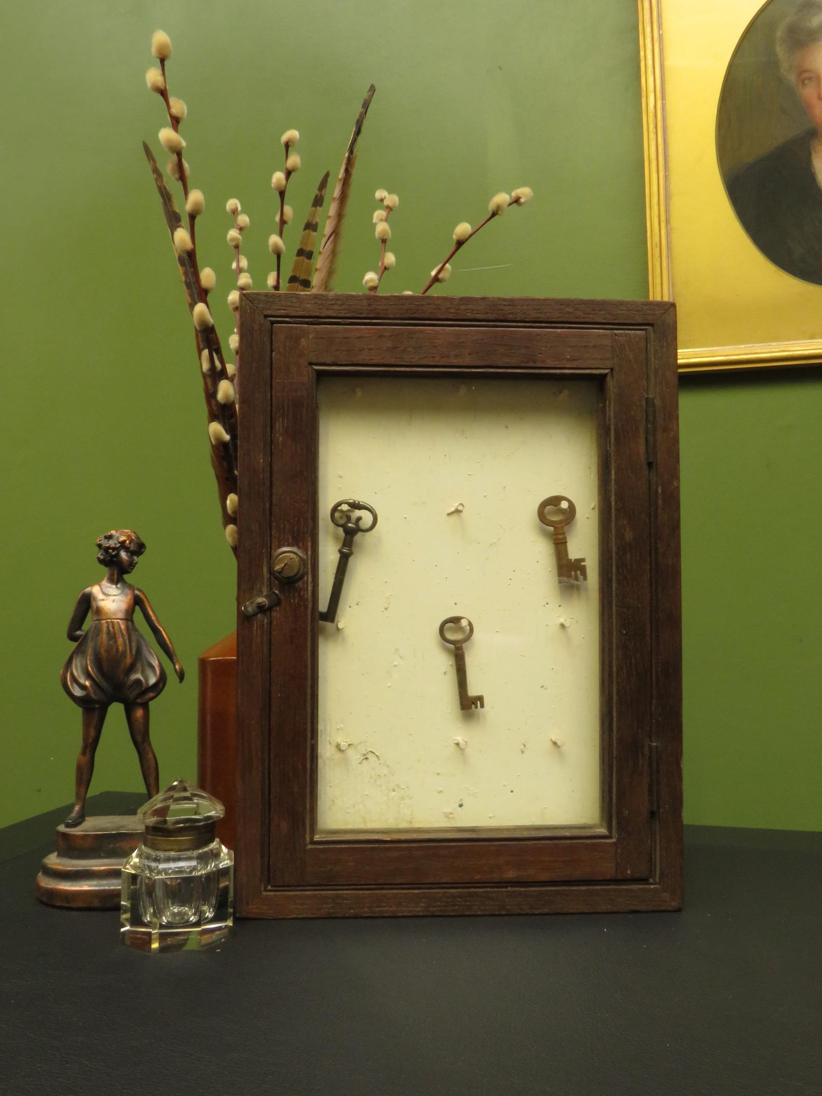 Antique Wooden Key Cabinet with Glazed Door, early 1900s