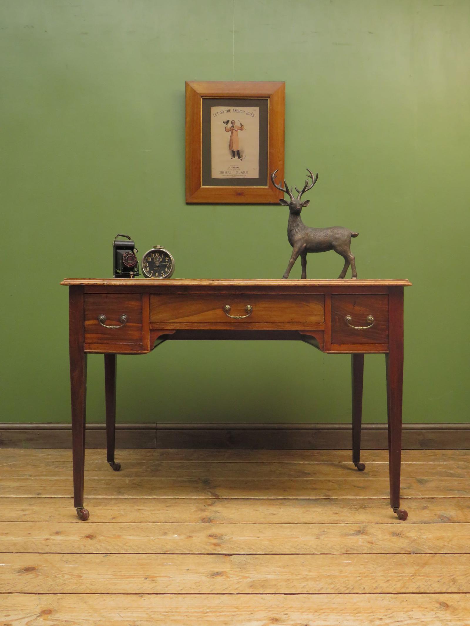 Antique Writing Table with Drawers and Aged Leather Top