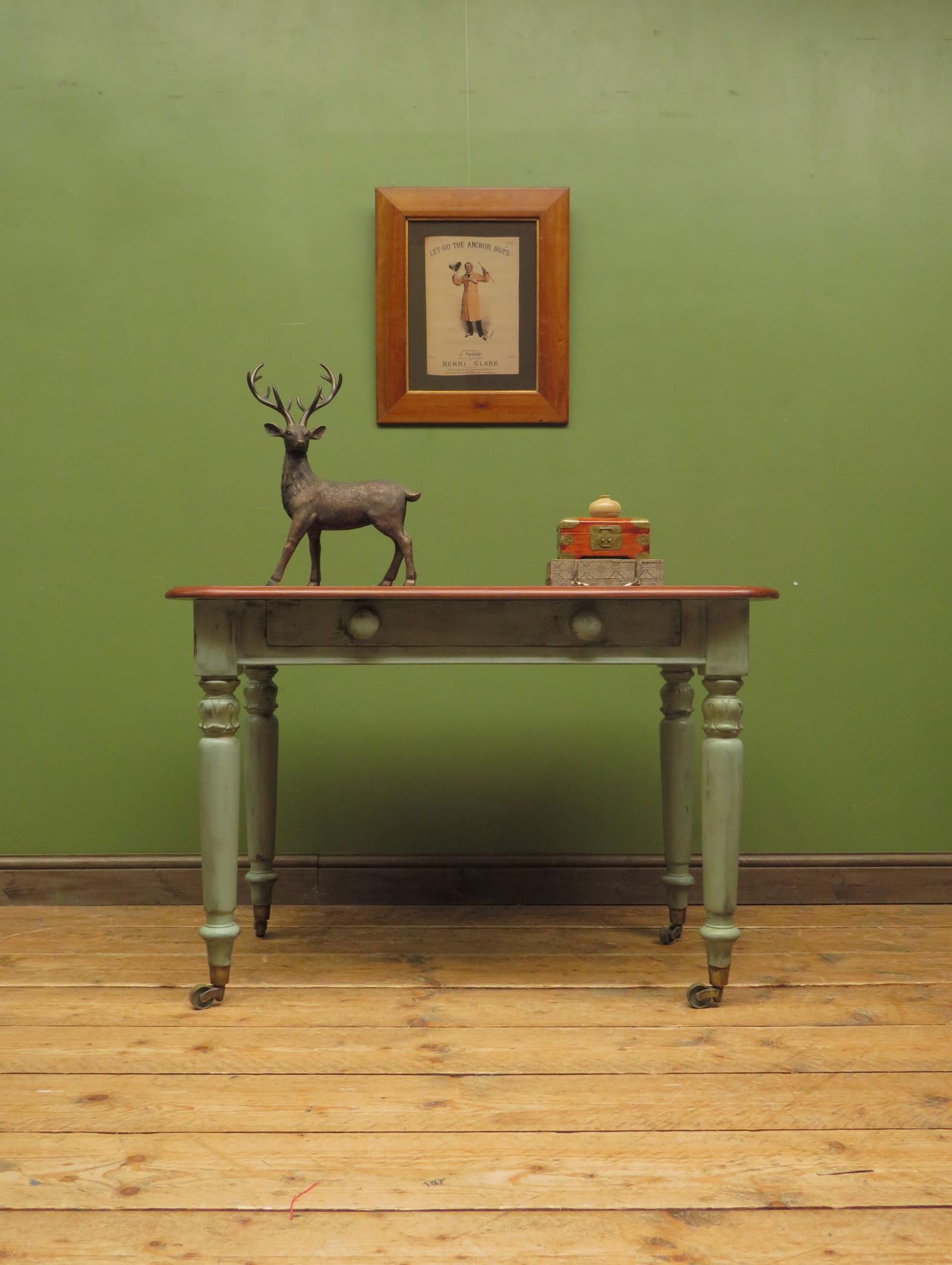 Antique Writing Table with Painted Duck Egg Base & Drawer