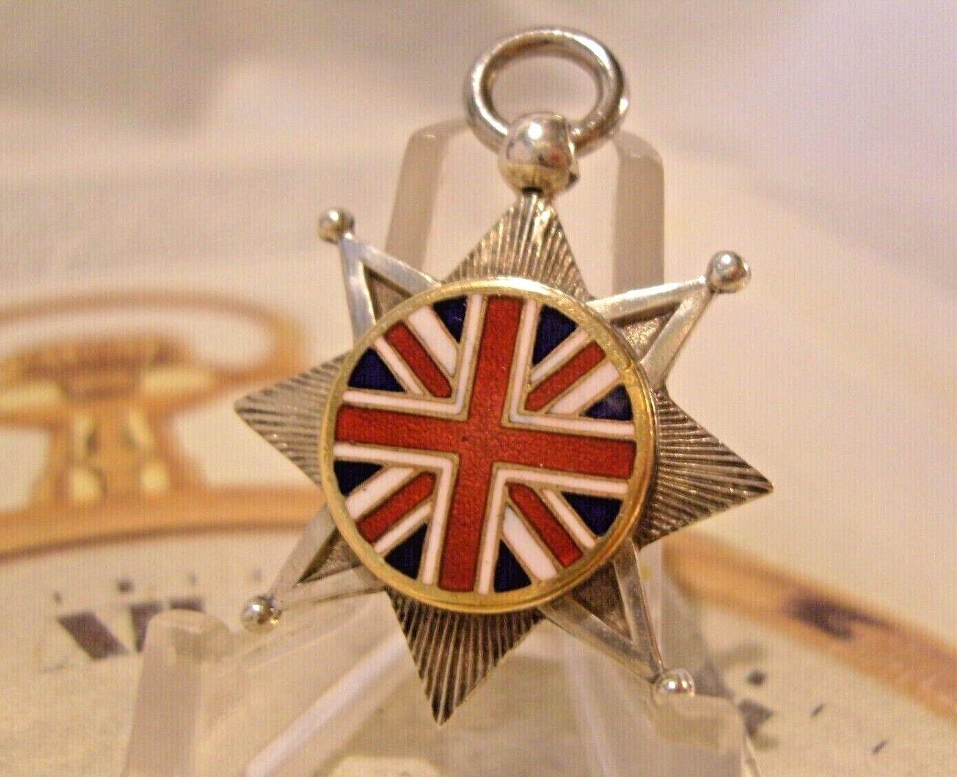 Antique WW1 Pocket Watch Chain Fob 1918 Silver Nickel Union Jack Flag Star Fob