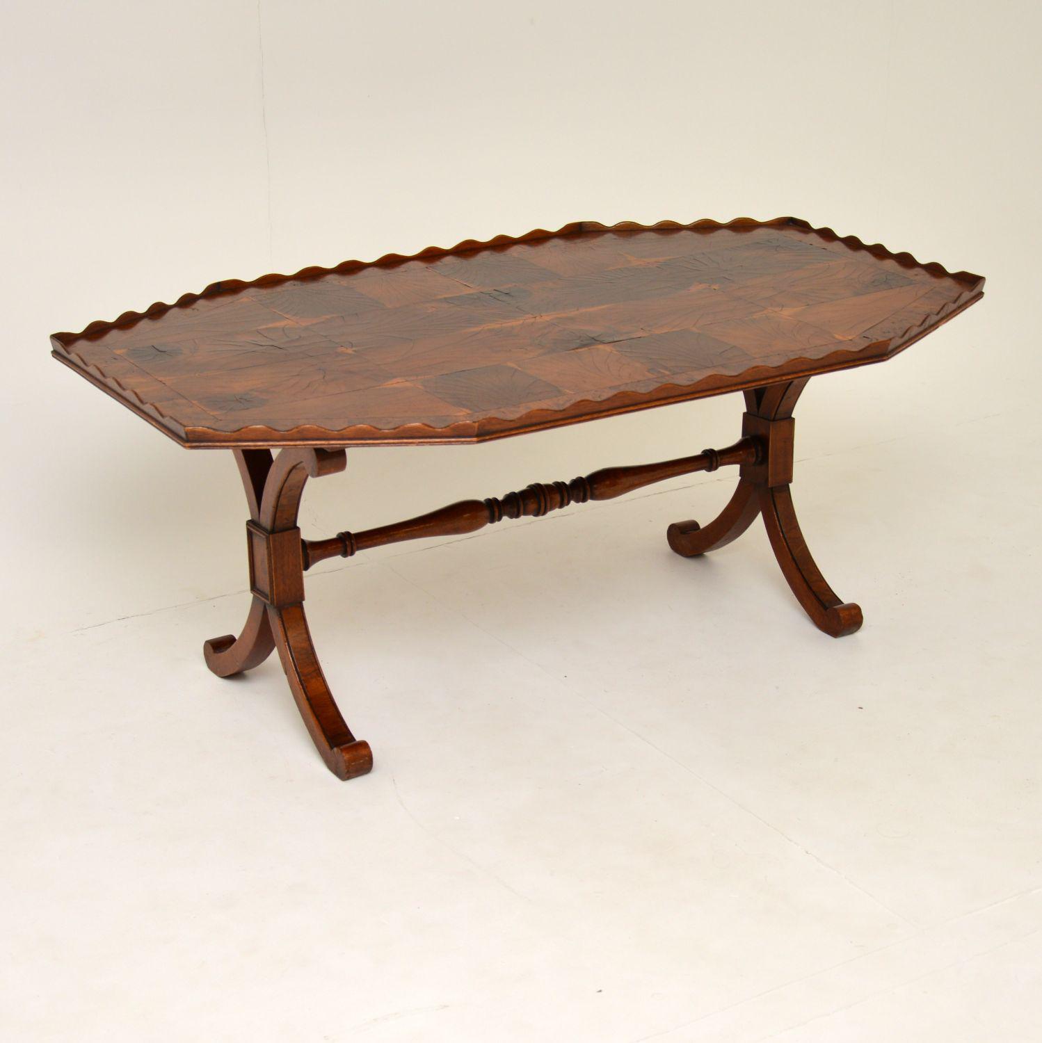 Antique Yew Wood Oyster Veneer Coffee Table