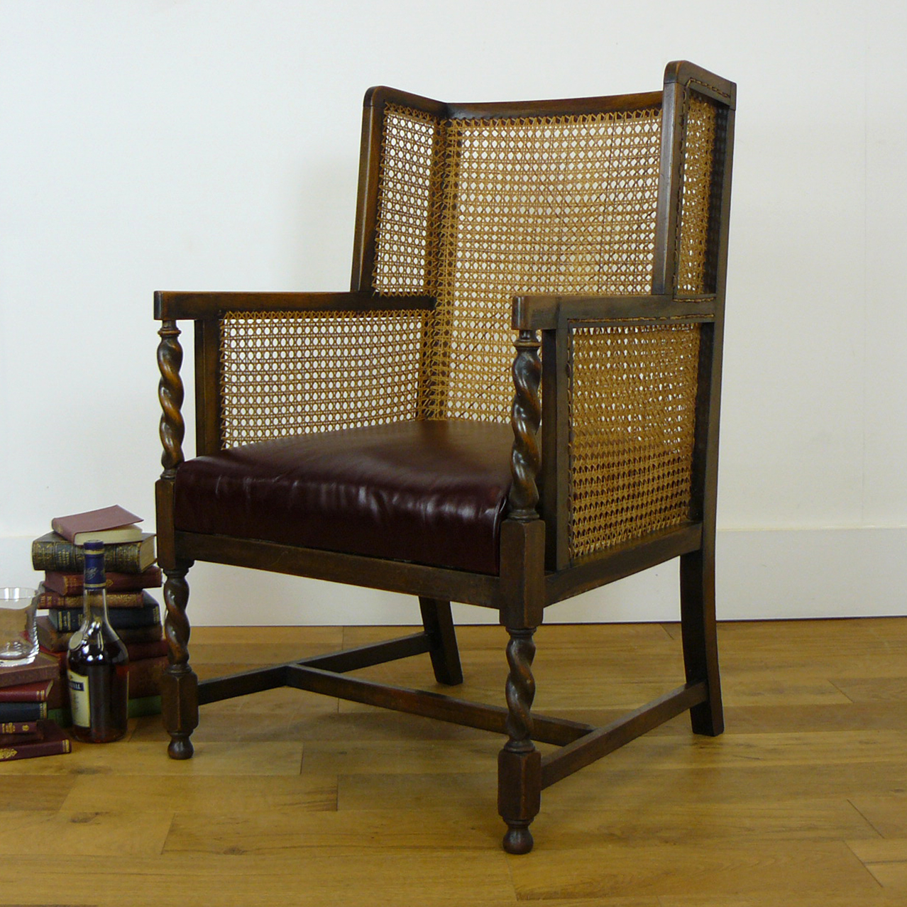 Appealing Wingback Bergere Armchair with New Leather Seat