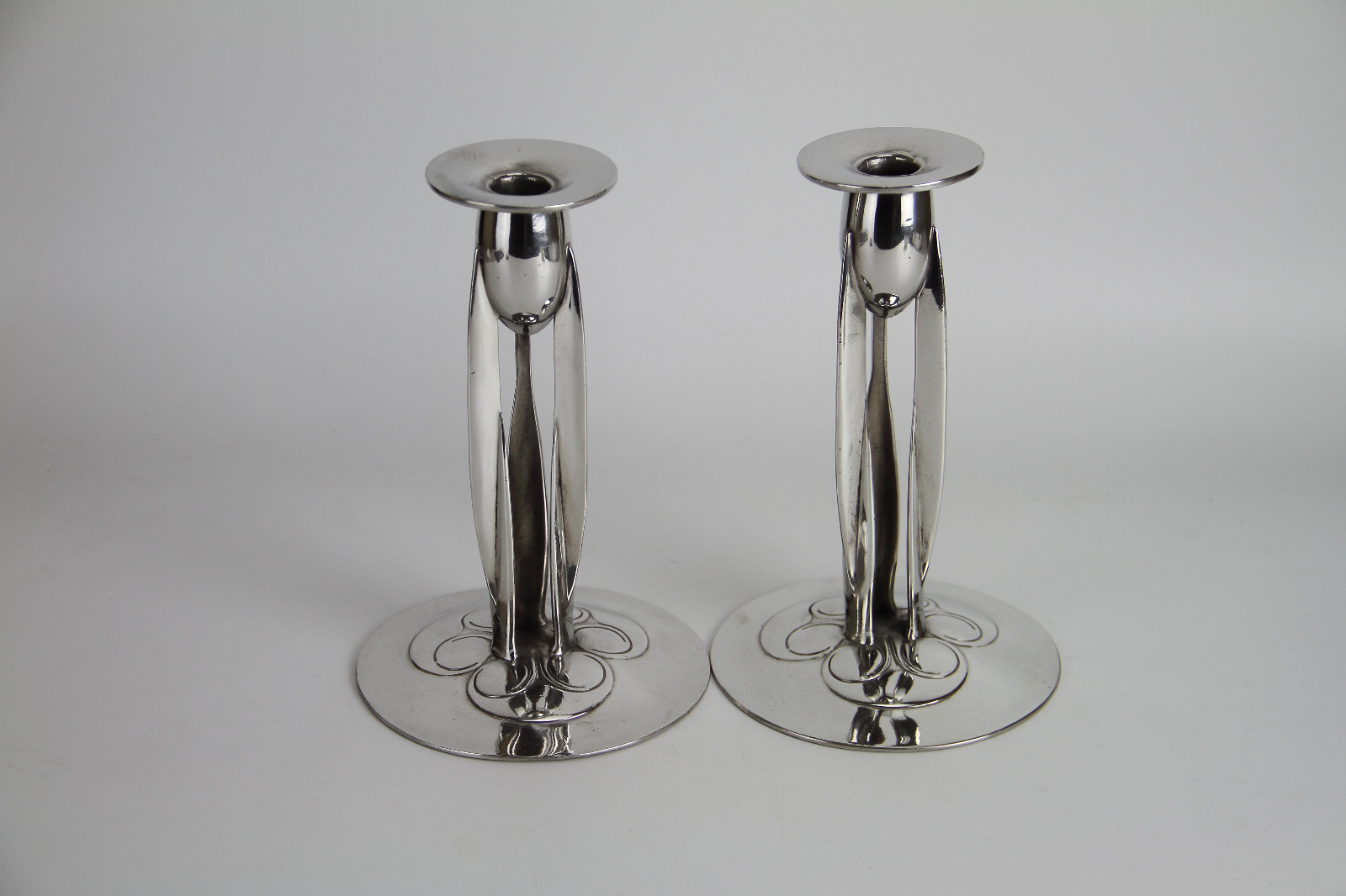 Archibald Knox for Liberty & Co Pewter Candlesticks c.1903