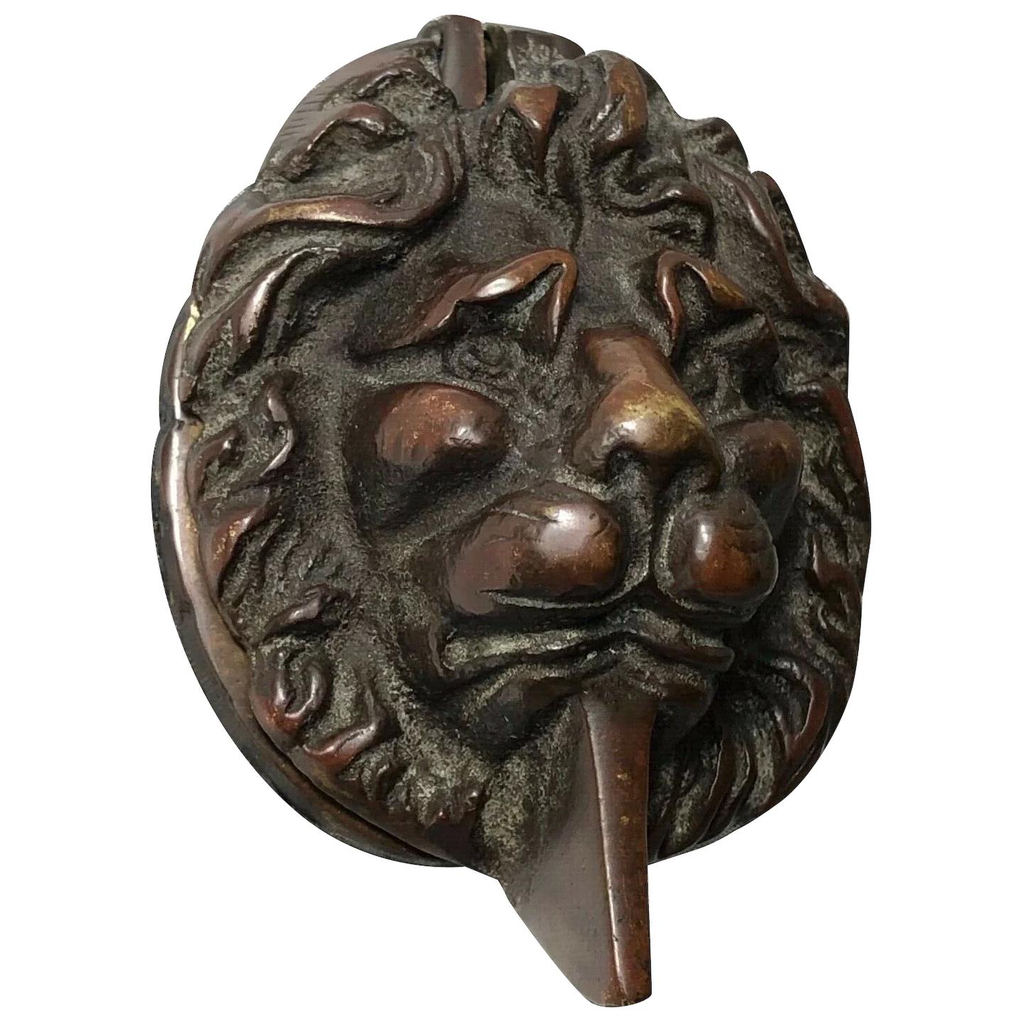 Architectural Early 19th Century Small William Ivbronze Lion Door Knocker
