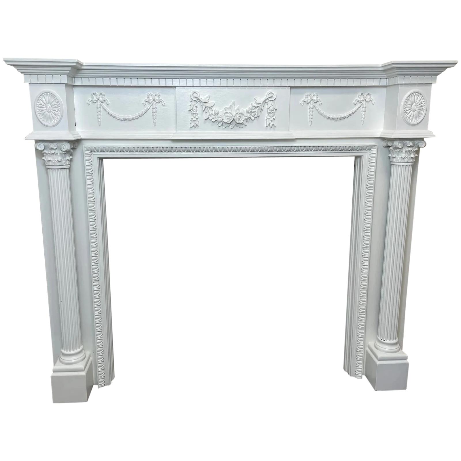 Architectural Georgian Robert Adam's Style White Fireplace Surround Garlands Roses