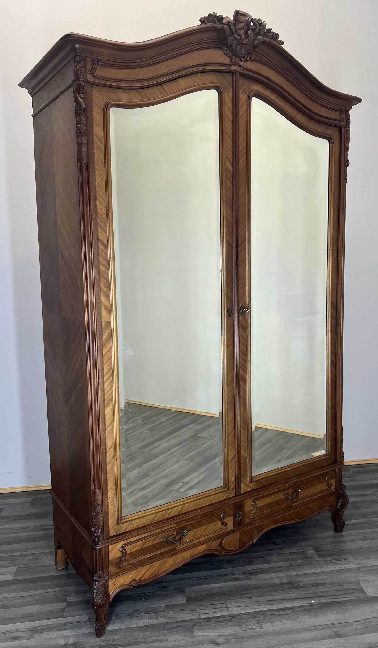 Armoire Wardrobe -antique French Carved Mirrored Rocaille Wardrobe