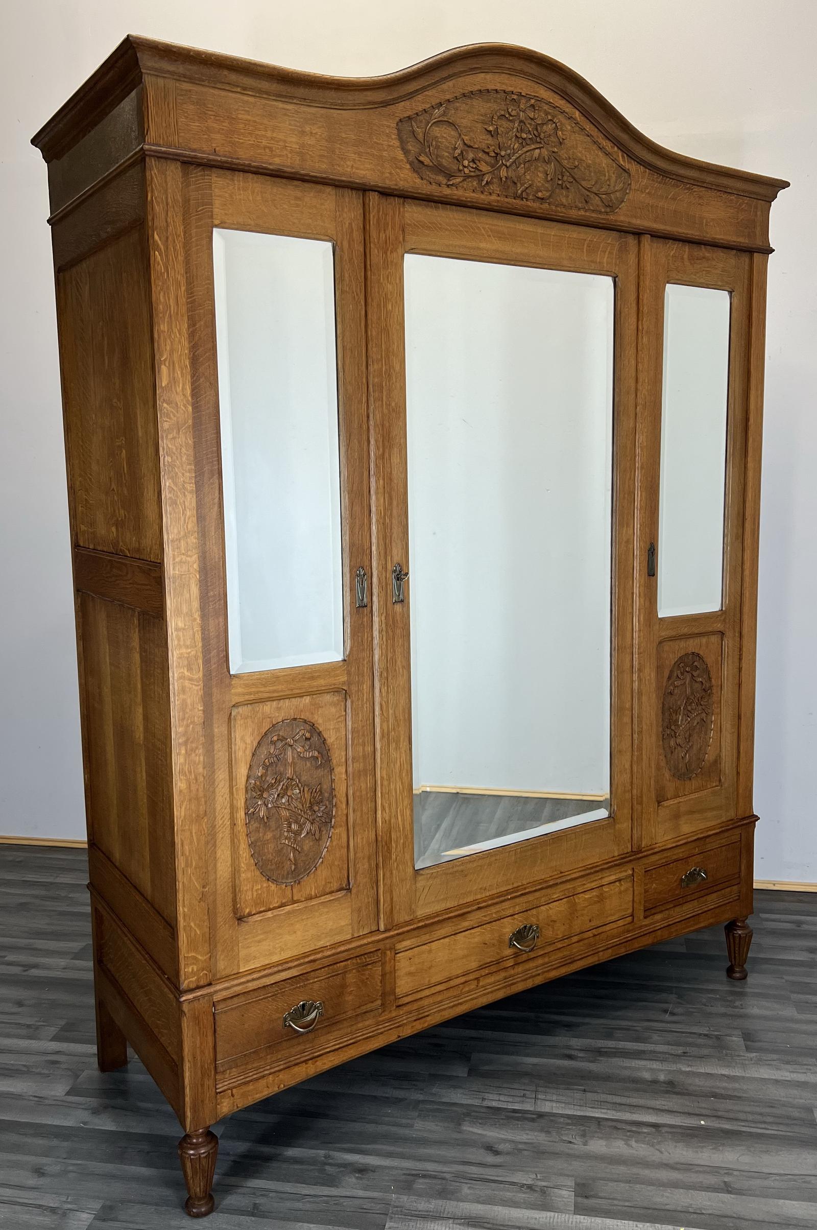 Armoire Wardrobe -antique French Carved Oak Mirrored Wardrobe