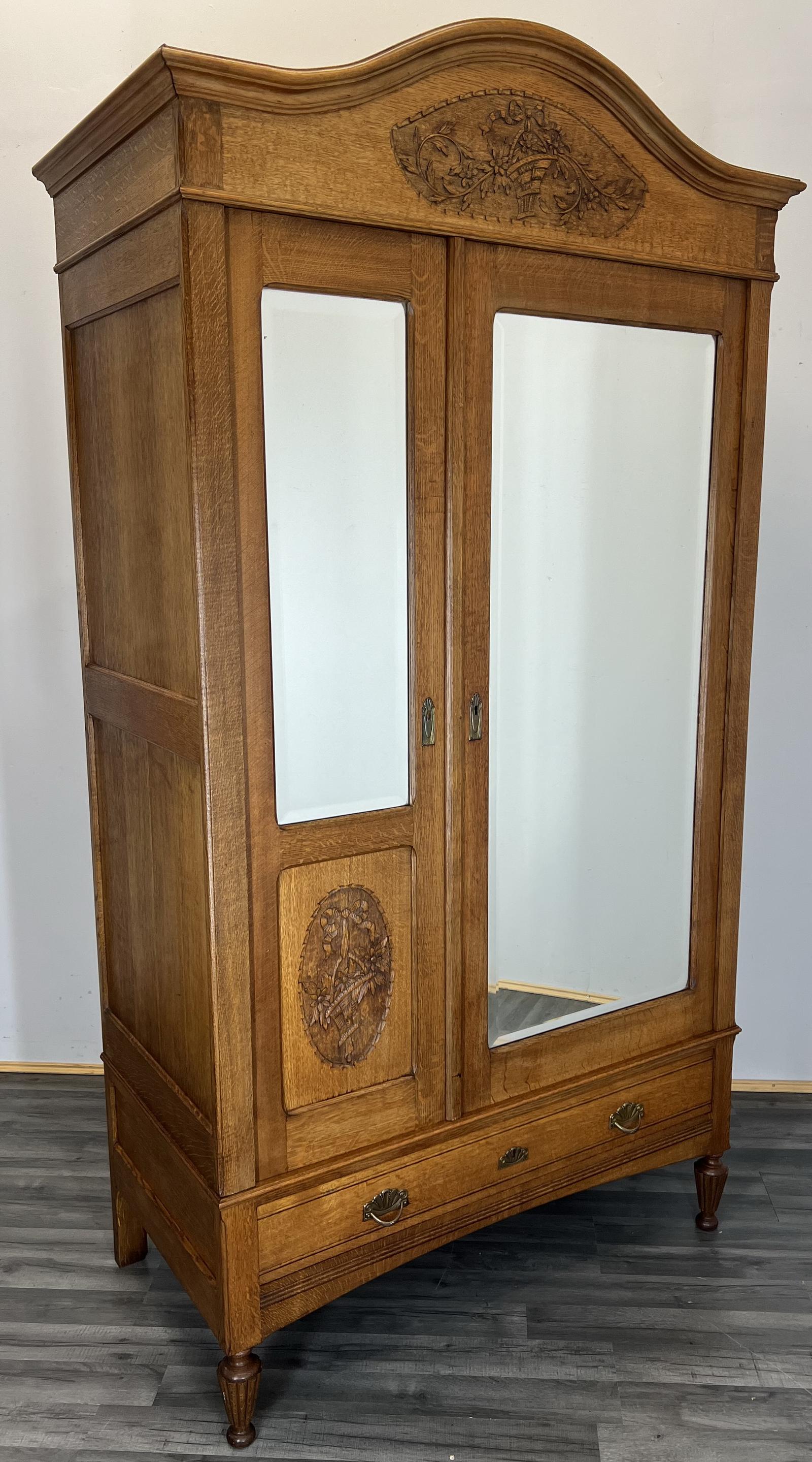 Armoire Wardrobe -antique French Carved Oak Mirrored Wardrobe