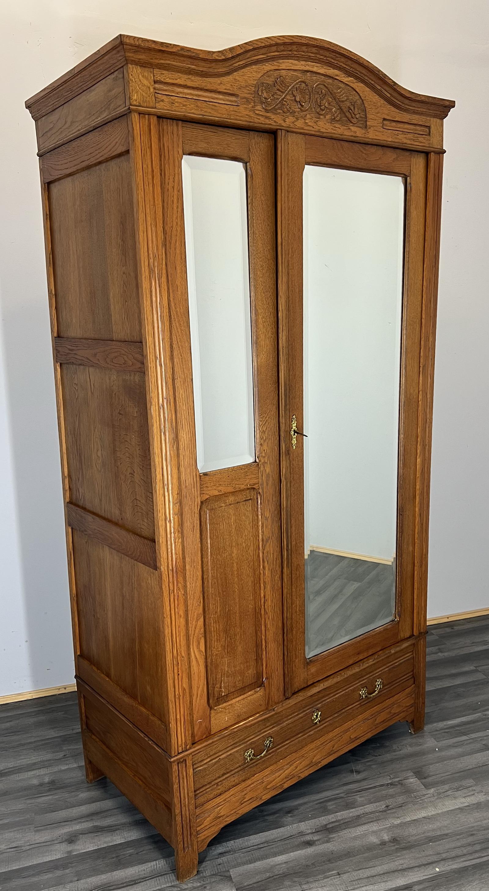 Armoire Wardrobe -antique French Oak Carved Mirrored Wardrobe
