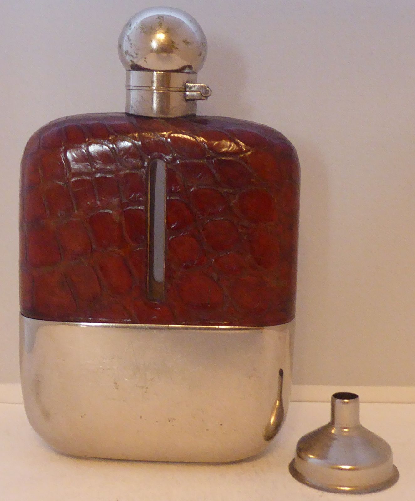 Army & Navy Silver Plated Crocodile Skin Bound Glass Hip Flask
