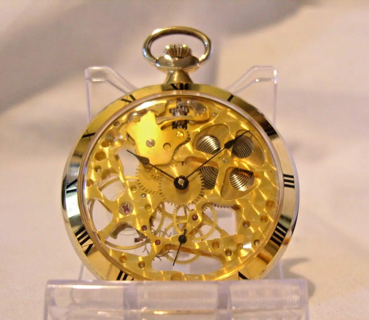 Arnex Pocket Watch Skeleton 12ct Gold Plated 1979 Original Box & Receipt FWO