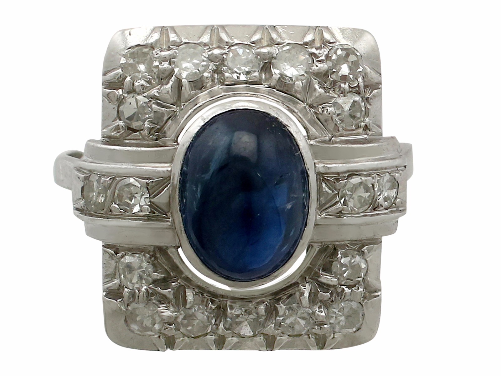 Art Deco 1.85ct Sapphire & 0.36 ct Diamond, Platinum Dress Ring (1 of 1)