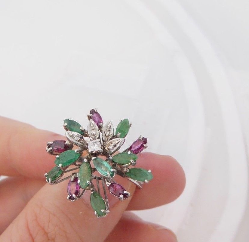 Art Deco 18ct Gold Diamond, Ruby & Emerald Large Cluster Ring