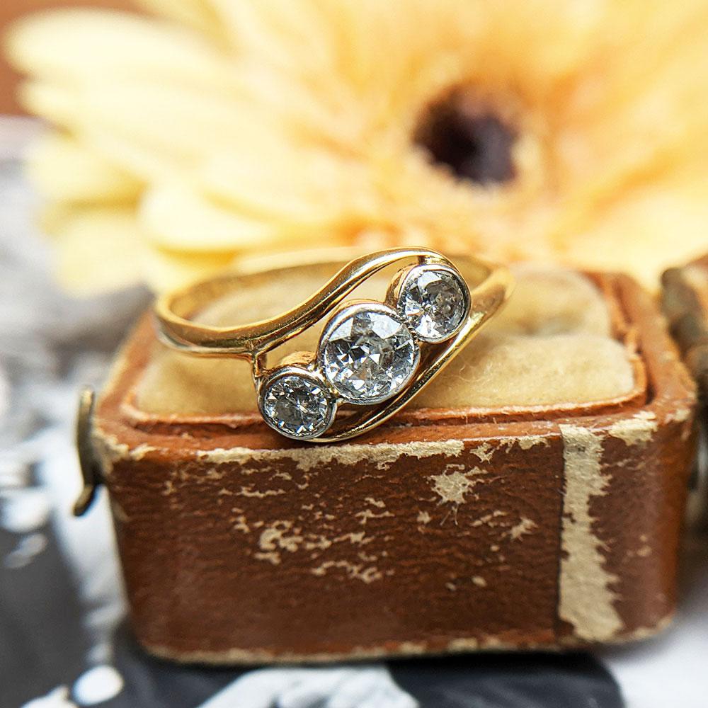 Art Deco 18ct Gold & Diamond Three Stone Bypass Ring