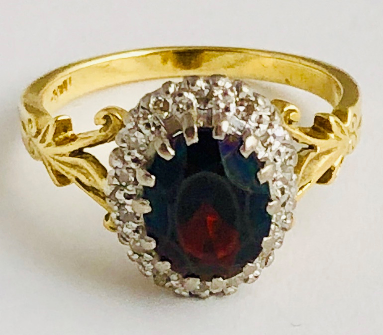 Art Deco 18ct Gold Garnet & Diamond Heavy Ring