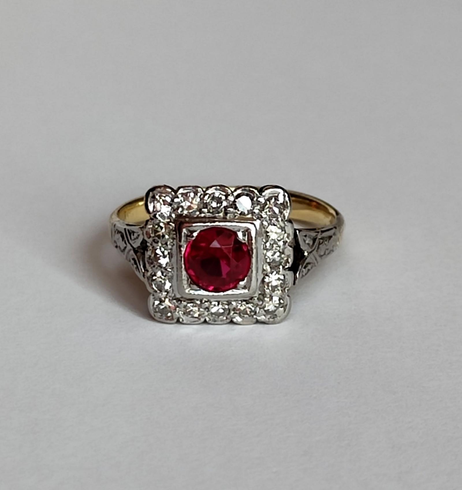 Art Deco 18ct Gold Platinum Diamond Ruby Ring Size L