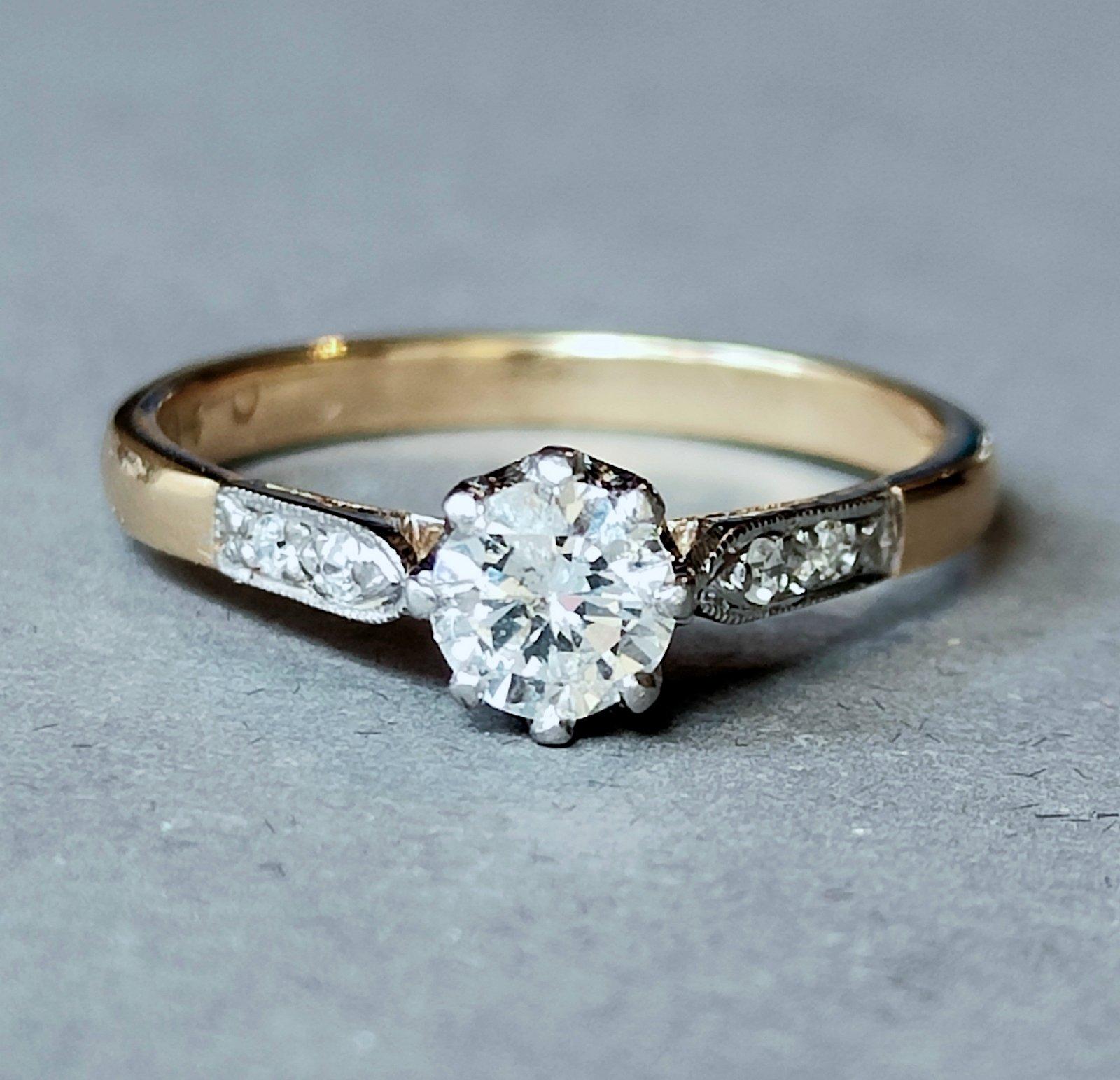 Art Deco 18ct Gold Platinum Diamond Solitaire Engagement Ring