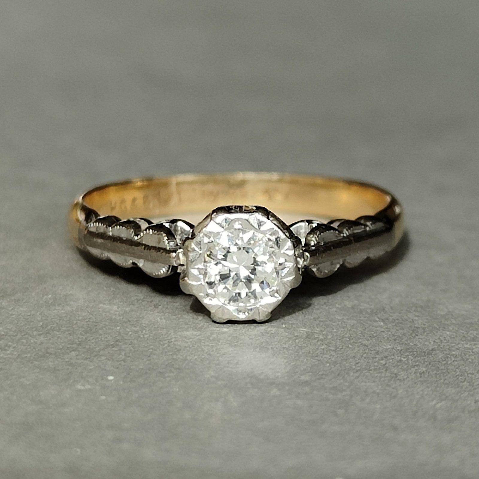 Art Deco 18ct Gold Platinum Diamond Solitaire Engagement Ring
