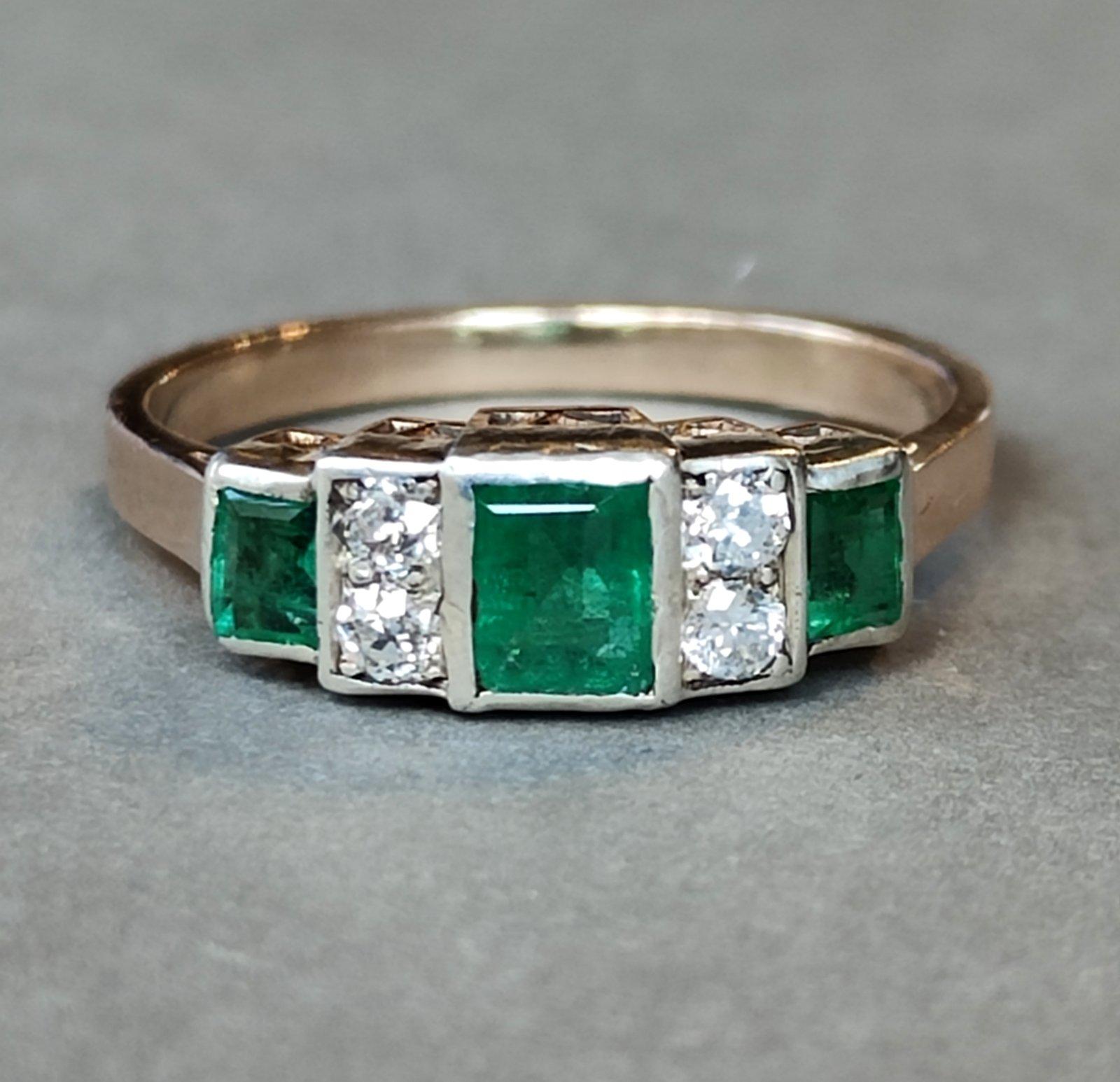 Art Deco 18ct Gold Platinum Emerald & Diamond Ring (1 of 10)