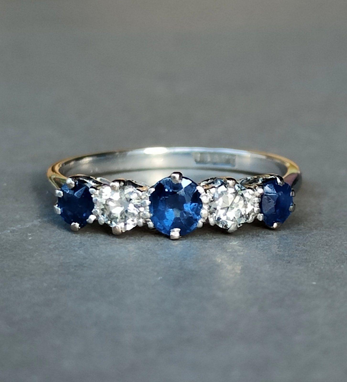 Art Deco 18ct Gold Platinum Sapphire Diamond Ring