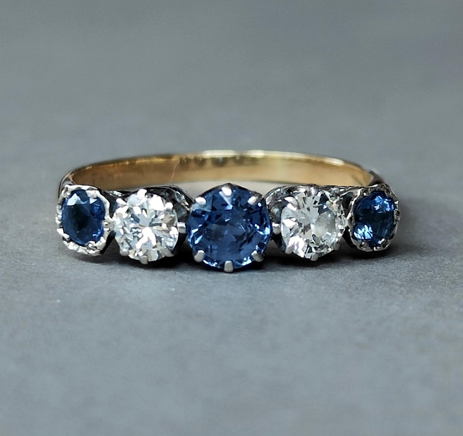 Art Deco 18ct Gold Sapphire & Diamond Five Stone Ring