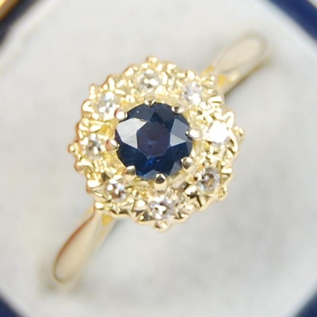 Art Deco 18ct Gold Sapphire & Diamond Ladies Cluster Ring