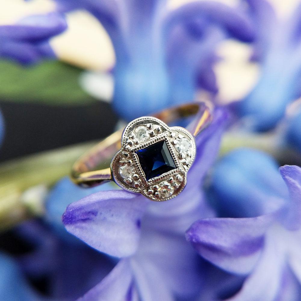 Art Deco 18ct Gold, Sapphire & Diamond Quatrefoil Ring