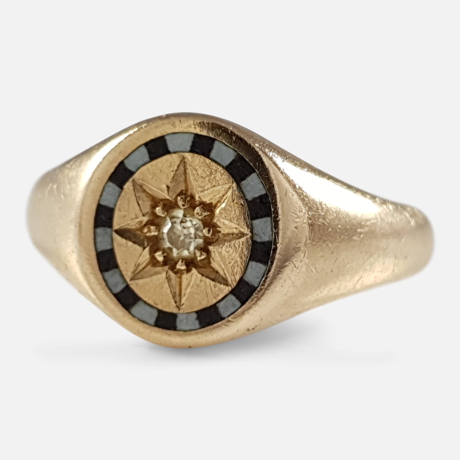 Art Deco 18ct Yellow Gold Diamond & Enamel Signet Ring 1922