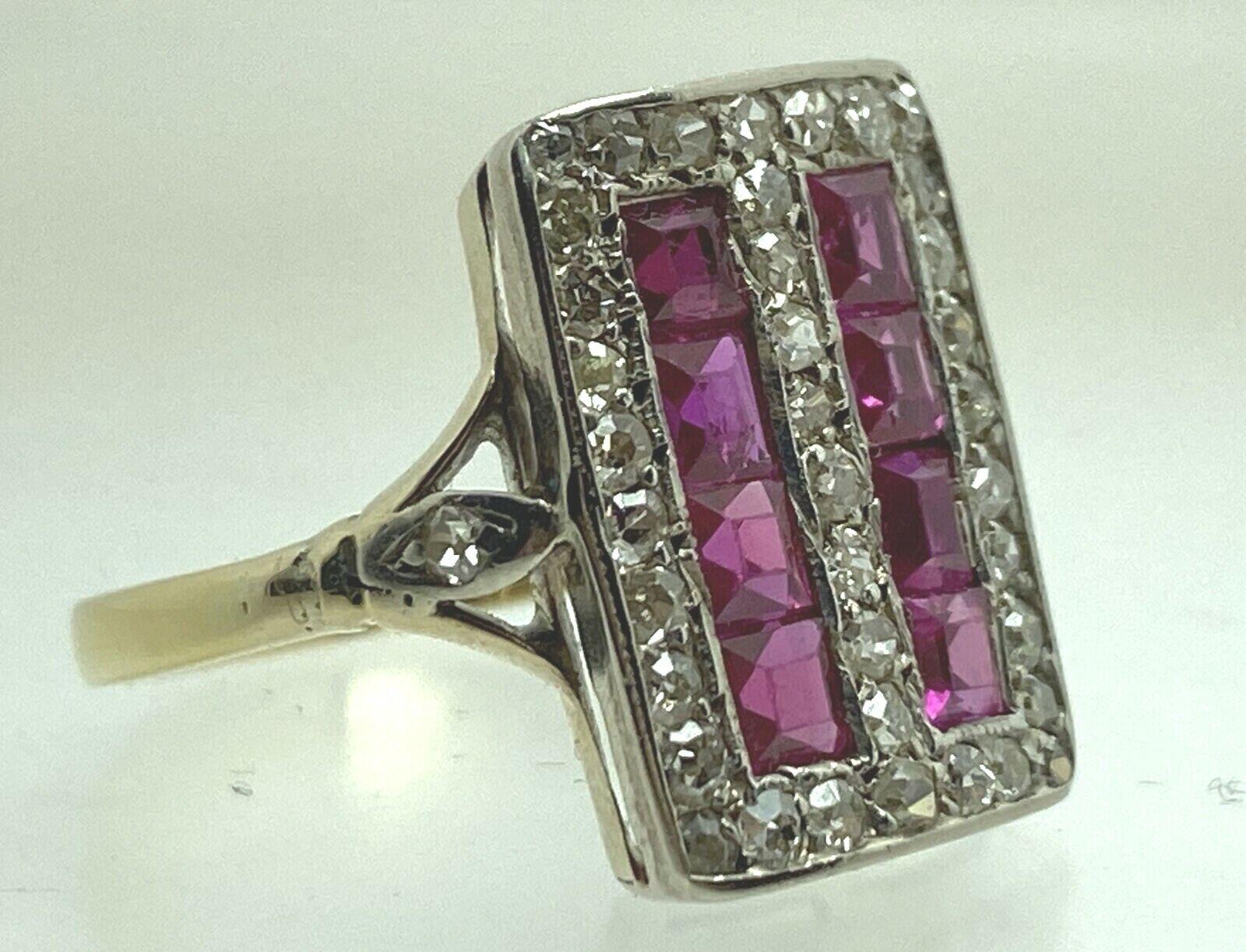 Art Deco 18ct Yellow Gold & Platinum, Diamond & Ruby Ring