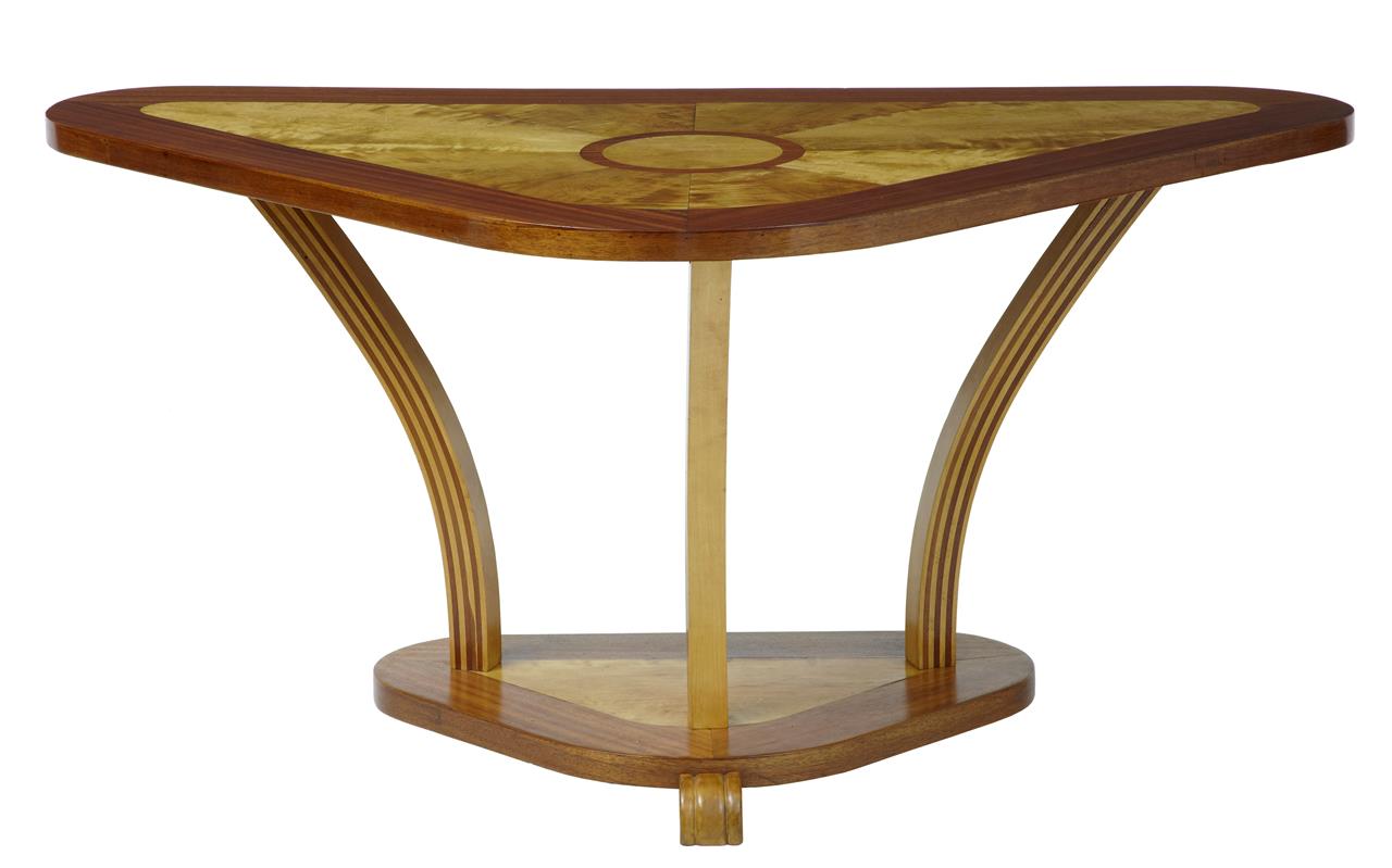 Art Deco 1920's Birch & Mahogany Inlaid Shaped Console Table (1 of 1)