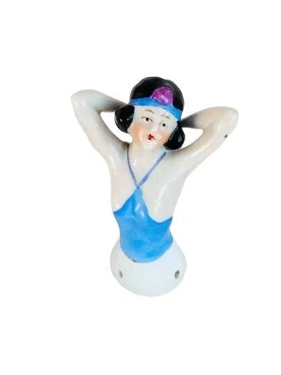 Art Deco 1920s Carl Schneider German Porcleain Flapper Lady Pin Cushion Half Doll