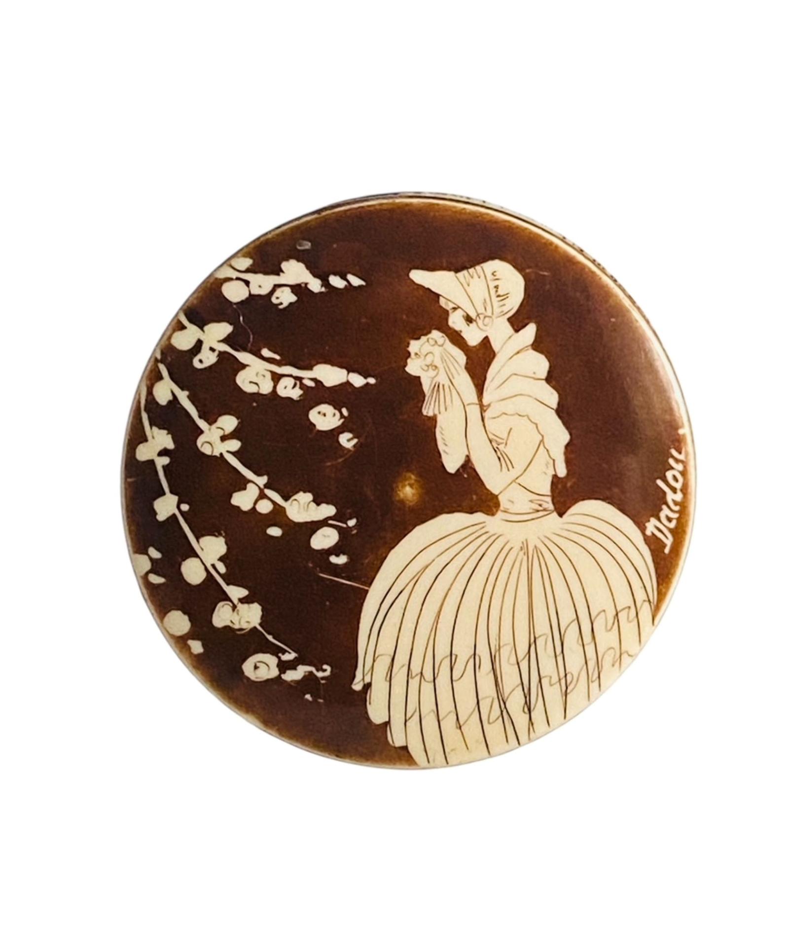 Art Deco 1920's French Hand Painted Bakelite Miniature Powder Compact Rouge Pot
