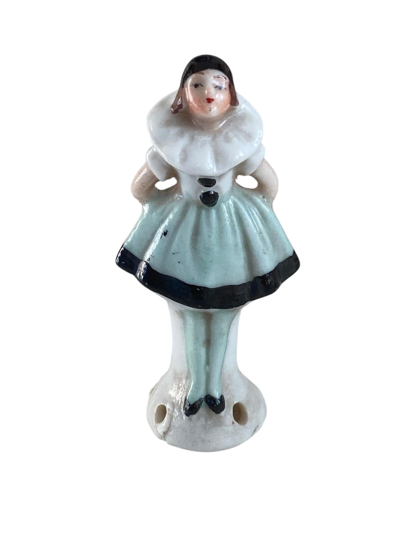 Art Deco 1920s German Porcelain Full Figure Mardi Gras Girl Pin Cushion Half Doll