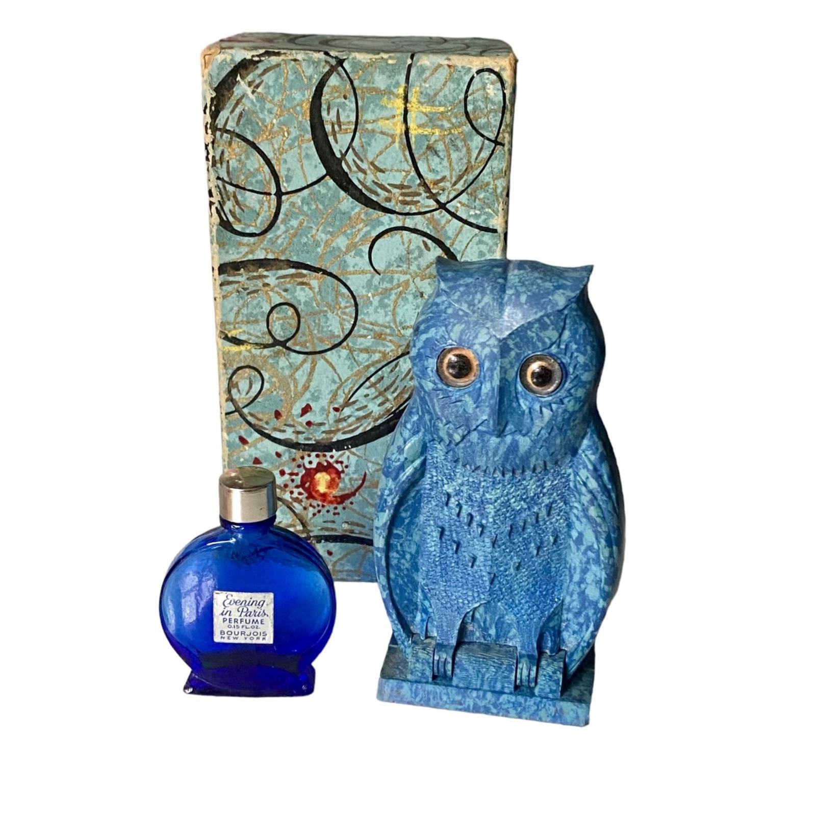 Art Deco 1930s Bourjois Evening in Paris Perfume Scent Bottle in Bakelite Owl Case with Original Box