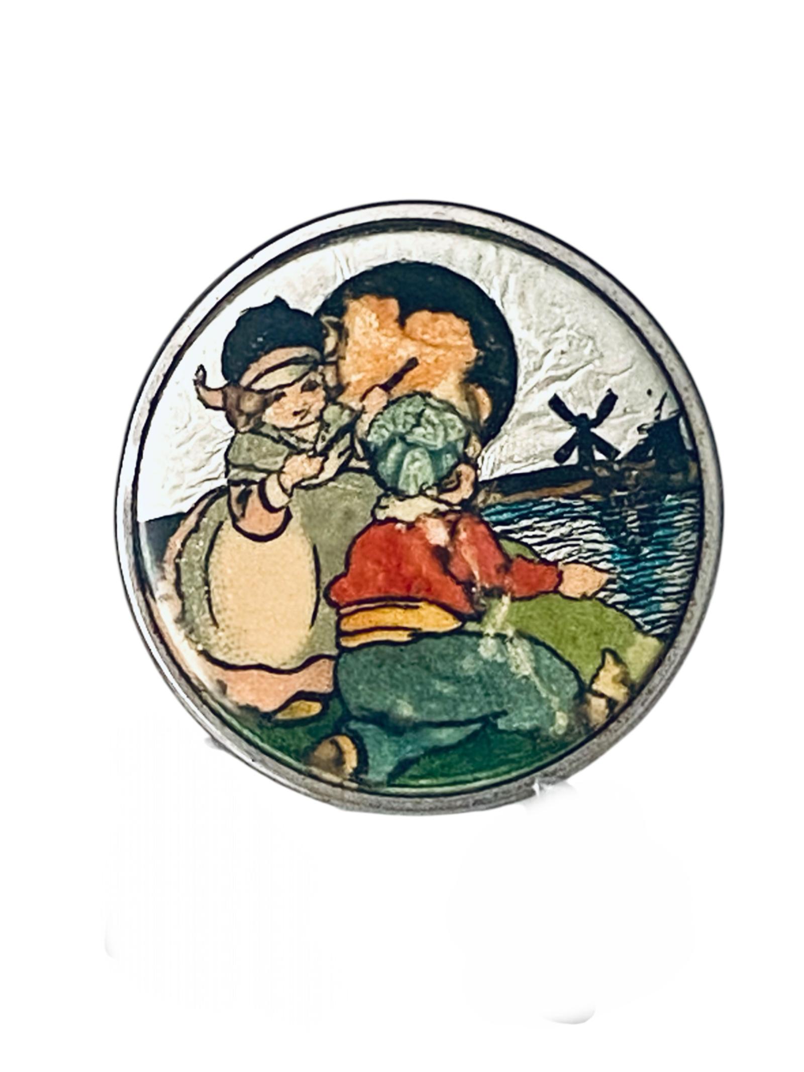 Art Deco 1930s Foil Backed Dutch Children Picture Miniature Glove Powder Compact