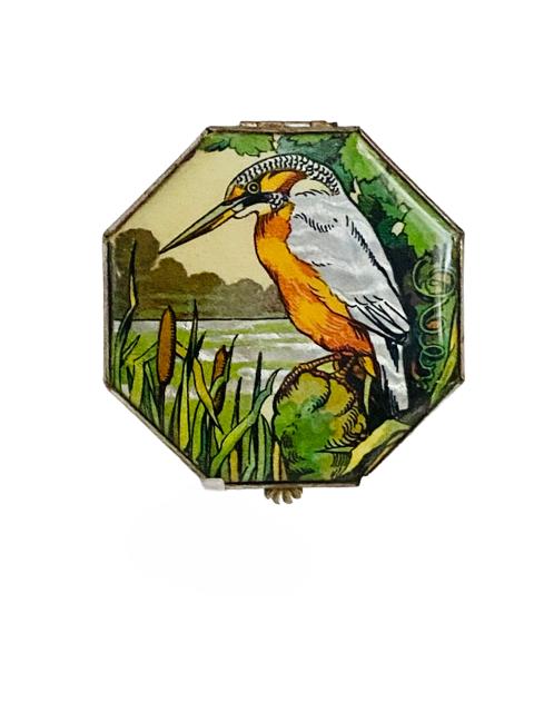 Art Deco 1930s Gwenda Foil Backed Kingfisher Picture Powder Compact